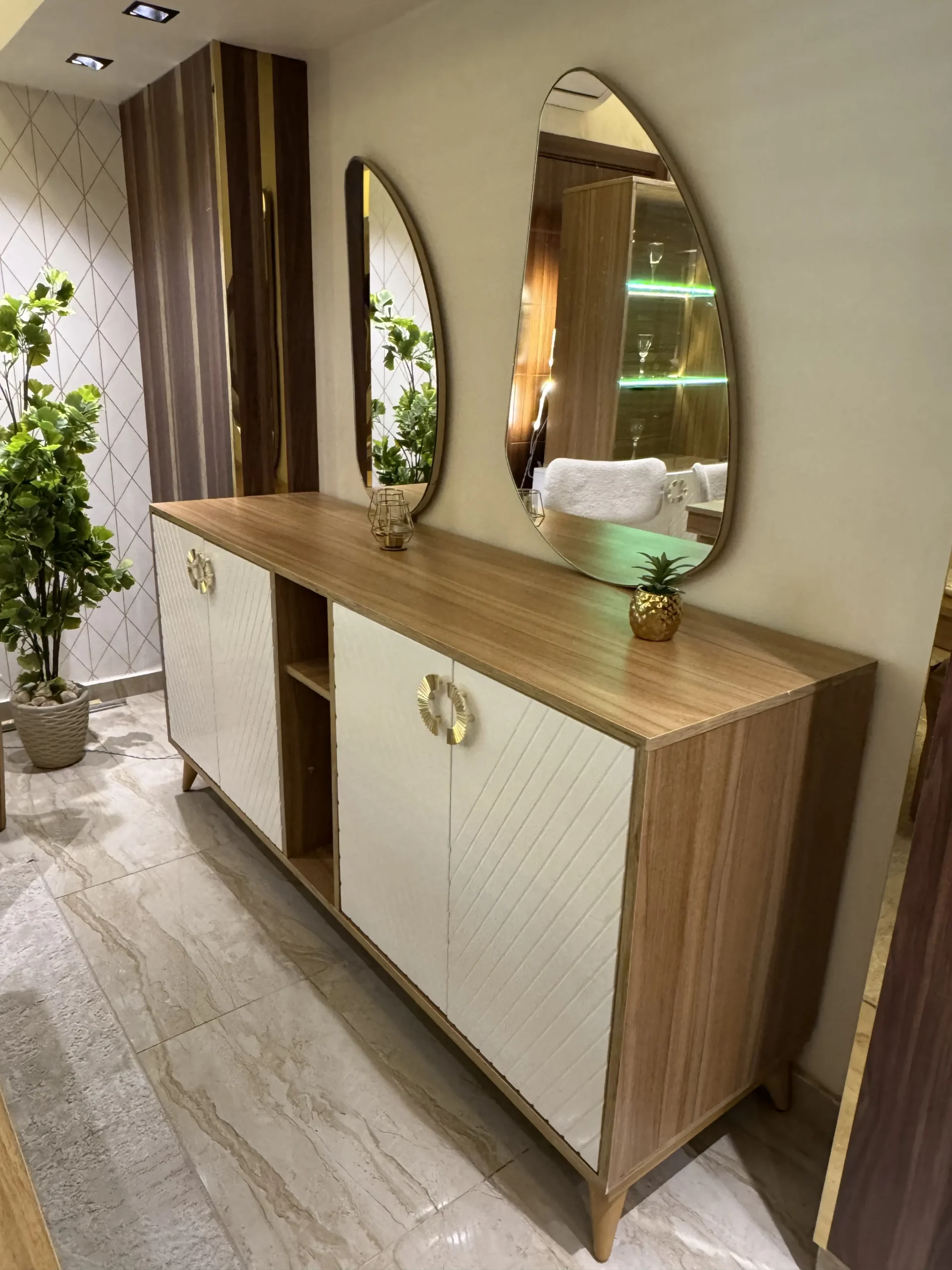 مكونة من ترابيزة سفرة مع 6 كراسي + نيش وبوفية و2برواز مرايا